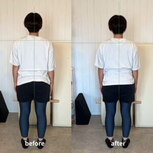 beforeは前に重心が寄っているせいで、腰が反り腰痛がありました。